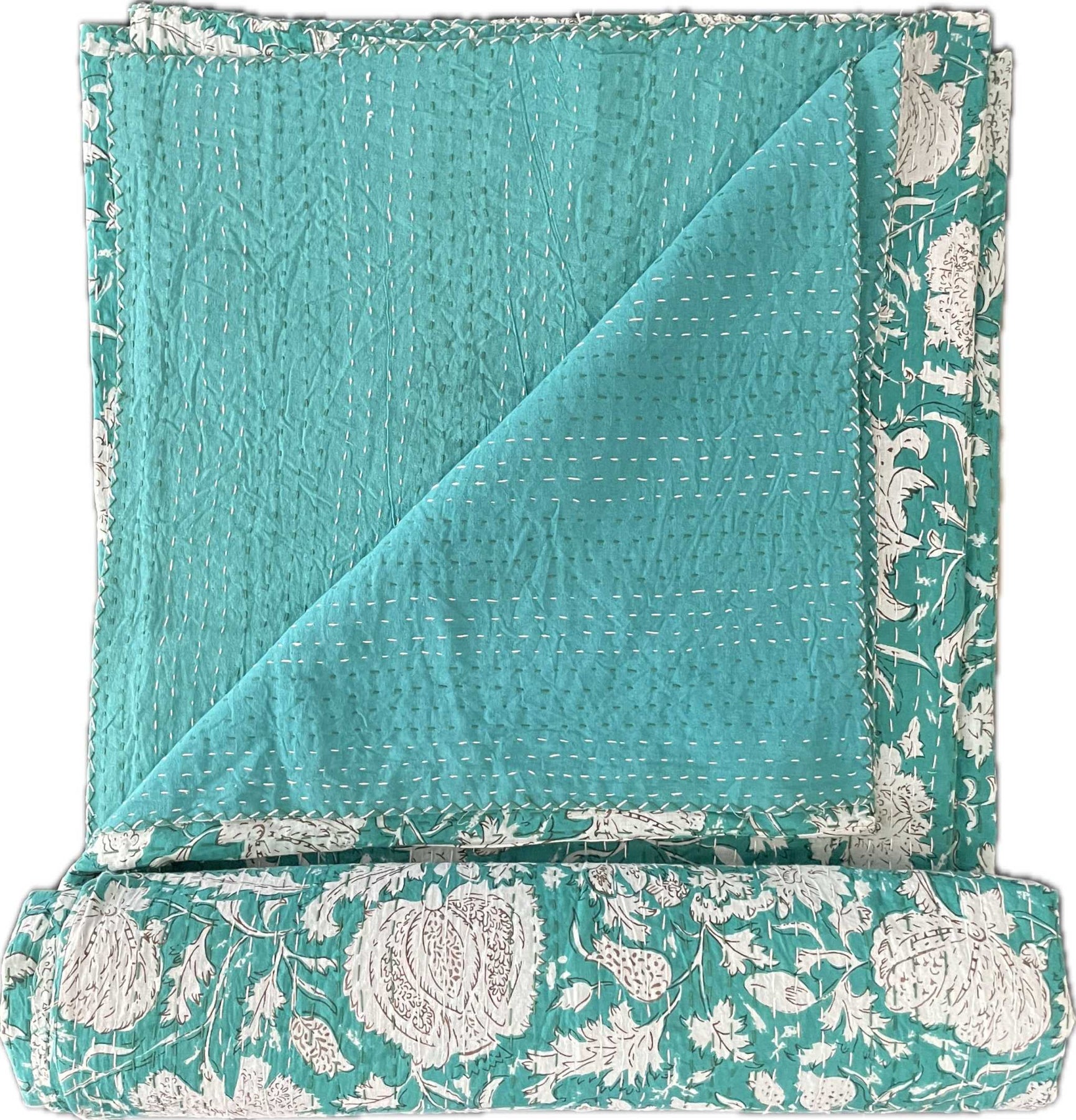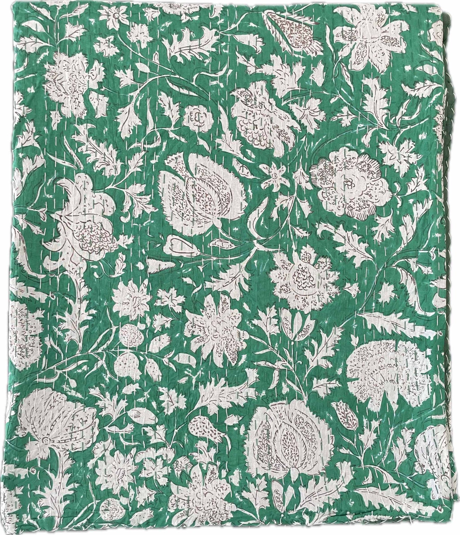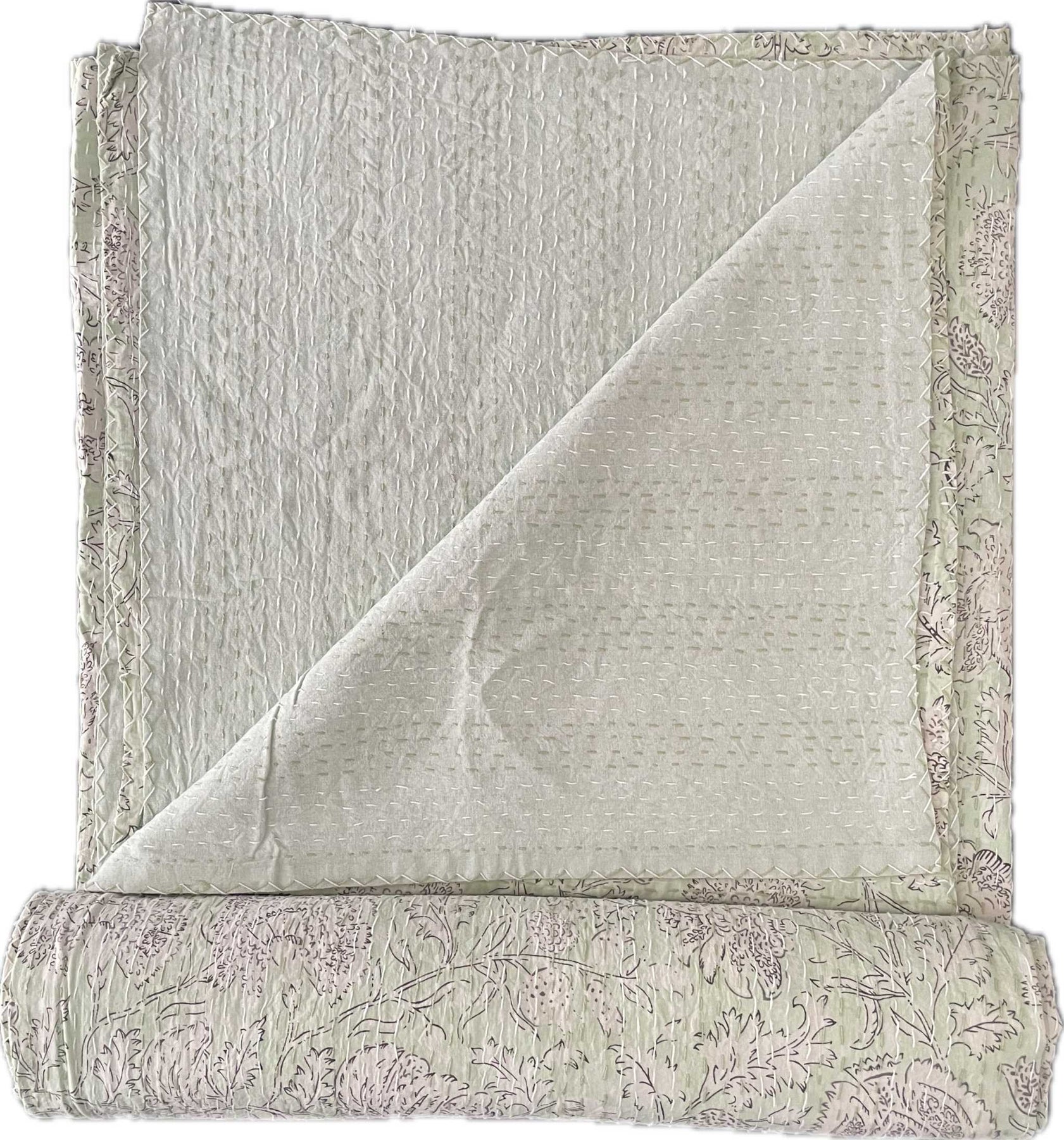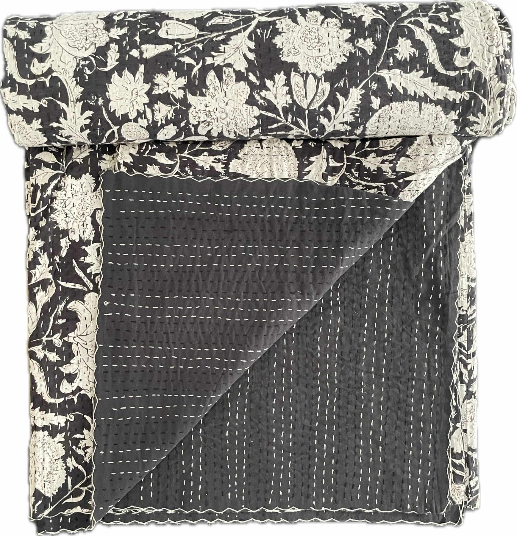 Kantha Quilt Set Flowery Pattern Cotton Bedding with pillow sham (s) Kantha Originals