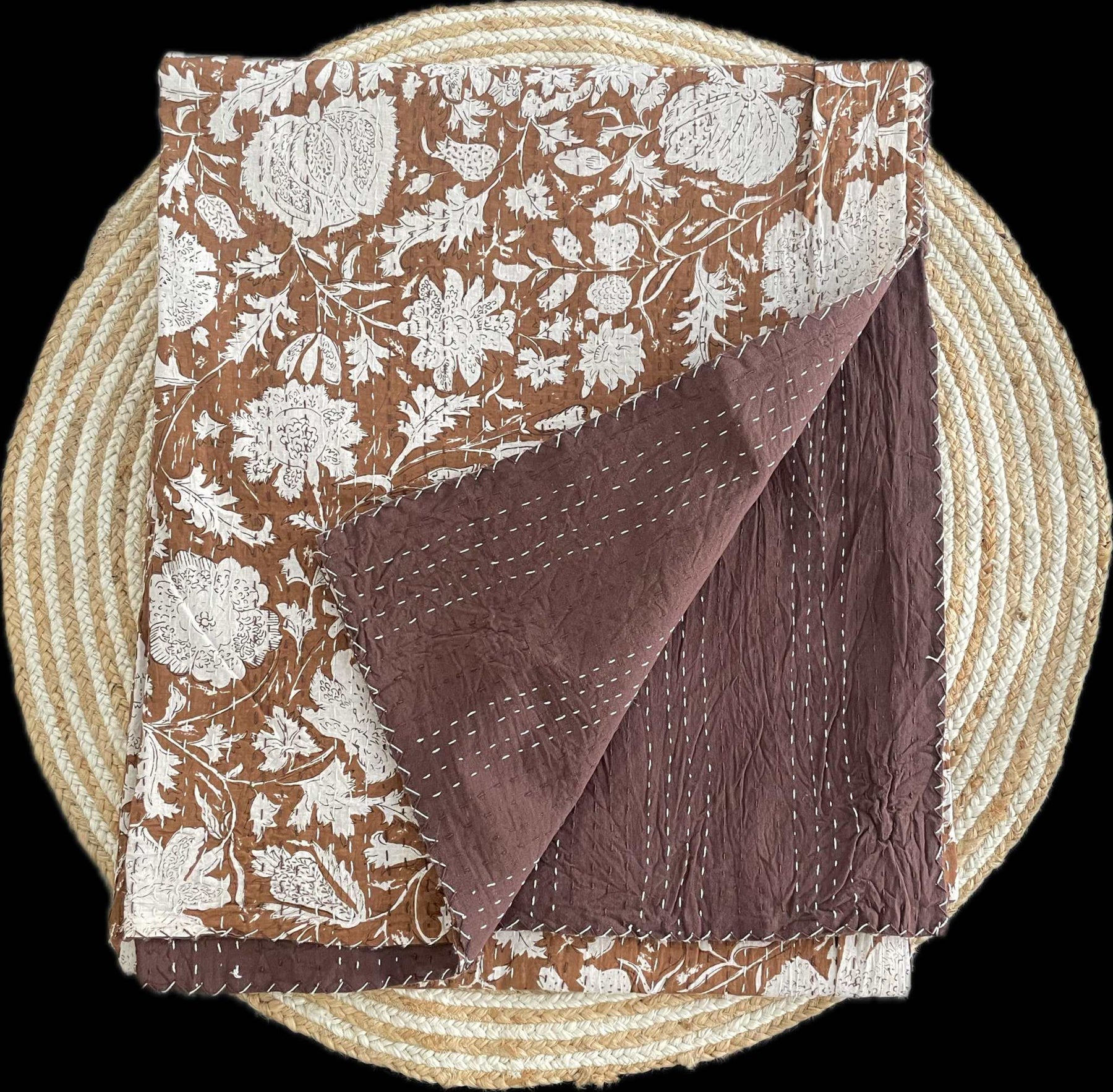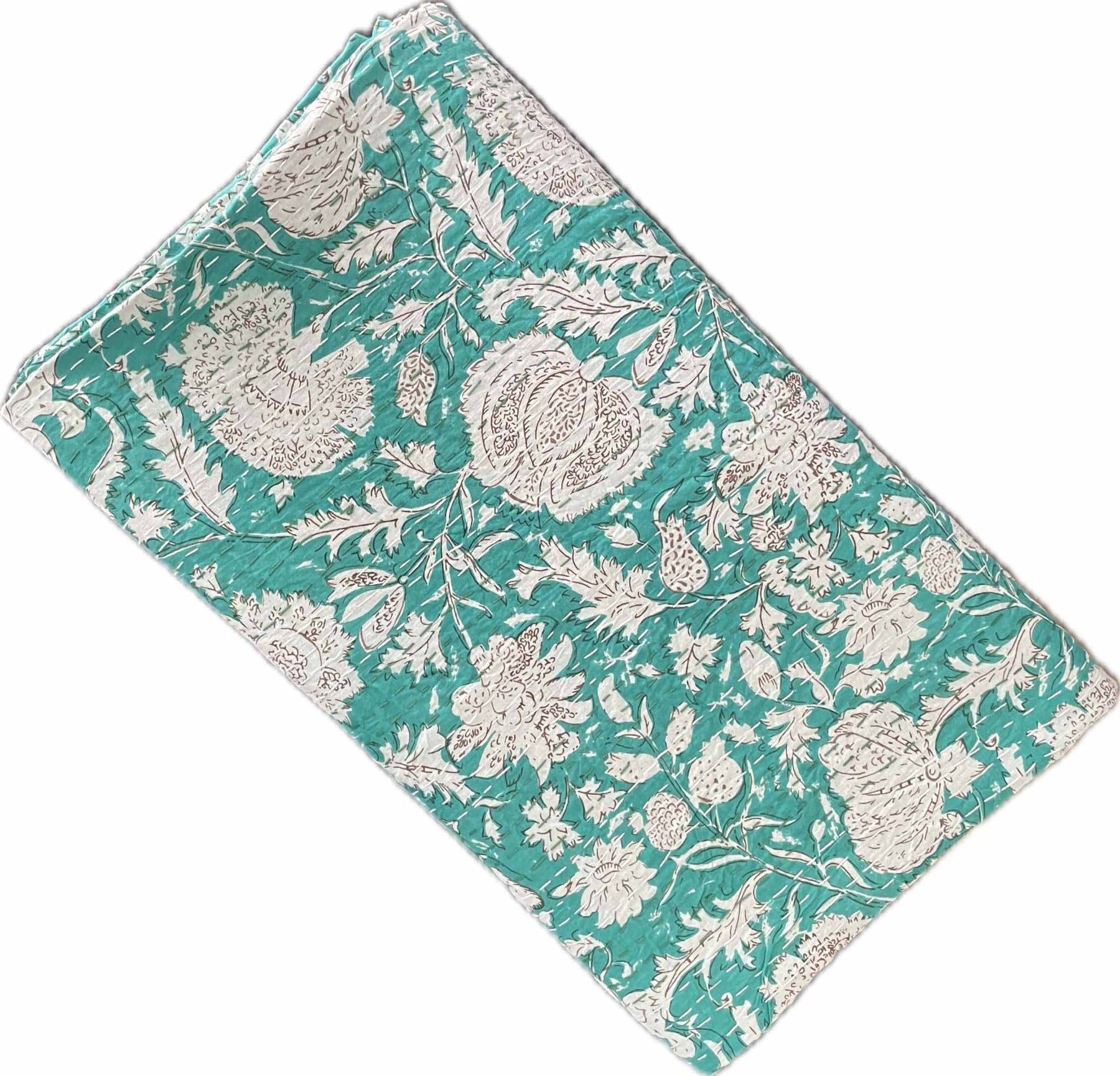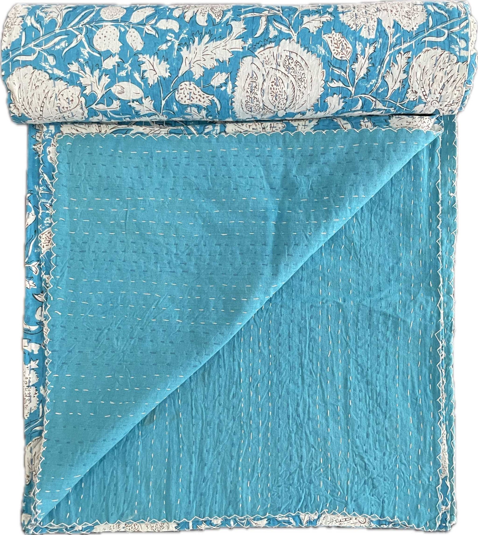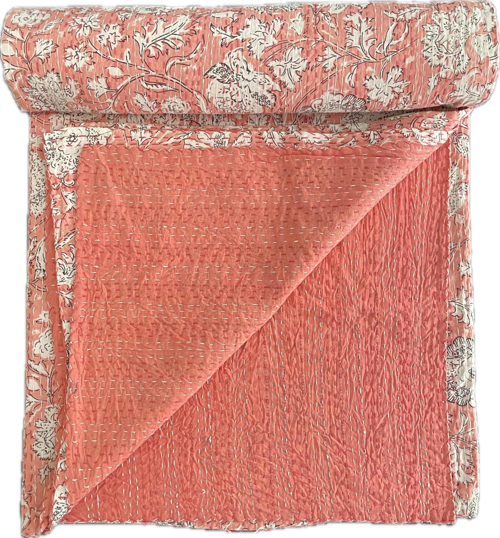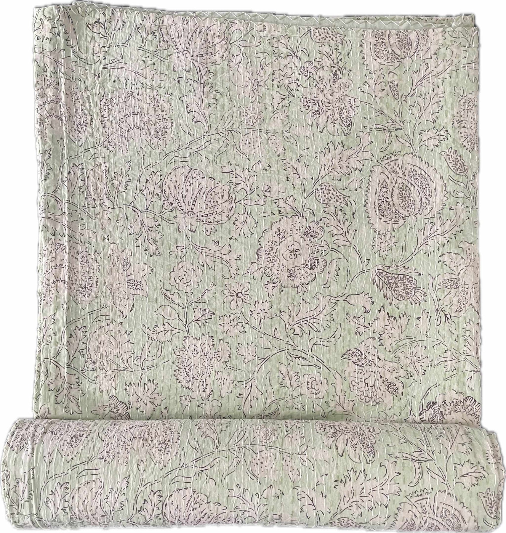 Kantha Quilt Set Flowery Pattern Cotton Bedding with pillow sham (s) Kantha Originals